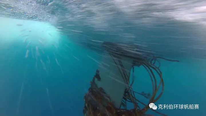 【图片:所有赛队位置为本文撰稿时的显示。】 从积极的一面来看,这位开普敦船长补充说到:“昨天晚上我们穿过了格林威治子午线,现在我感觉距离东南方向的家越来越近了!” 处于第二的‘格瑞国际号’刚刚完成的Elliot Brown海洋竞速跑也不是很理想。竞速过程中,注意到了行进的速度和表现不如其他赛队的好,他们赶紧使用船上的佳明航电VIRB动作摄影机放入船队水下观察,发现了左舷舵叶被海带缠绕上了。大家赶紧想办法来清理这些海带,船长Andy Woodruff报告说:“不走运的是,仍然有一些海草夹杂在舵叶和船体的连接处。希望在我们行进的时候,它们能逐渐掉落,但是如果掉落不下去的话,那肯定会影响我们开往开普敦剩下的比赛进程的。但是这就是帆船比赛,没有其他的竞技项目像帆船比赛一样充满着各种的挑战。”
