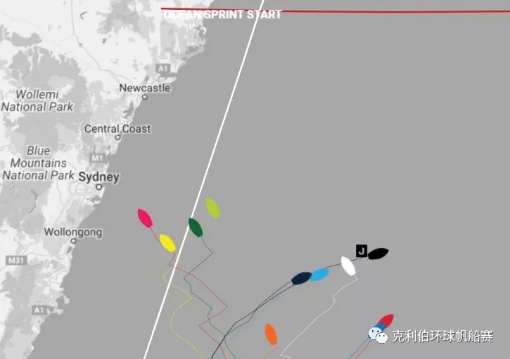 领跑船长Wendy Tuck率领赛队行驶的是靠近标准航线的西线,报告中说到:“我们的赛队仍然进行着标准的缩帆操作,反复进行。我们一直是做好了准备,迎接风向转变,具体说是从后方吹来,但是目前仍然是逆风行进。”