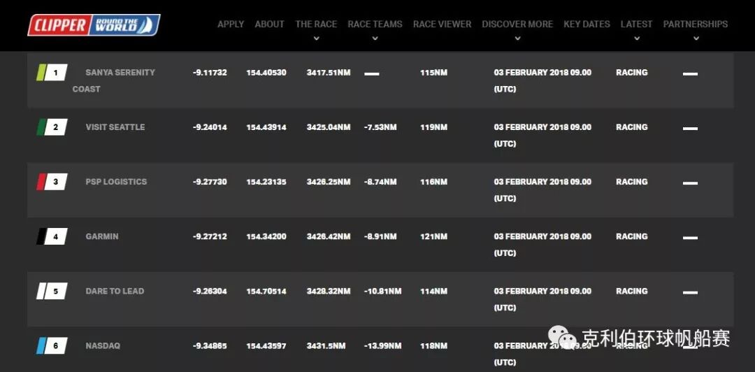 ‘西雅图号’经过一日的奋战,目前排位已经升至了第二,但是他们选择的是更加偏东的航线,而且与位列第三的‘PSP物流号’之间的差距也是非常小的,后者船长Matt Mitchell报告中说到:“目前帆船行进的速度很好。早些时间,我们的排位落后了一些,因为我让船员们选择了稍微高于标准航线的线路,所以说相对其他赛队而言,我们的节奏会慢一些,但是现在看来这个问题已经解决了,我们已经跑出自己的套路了。”