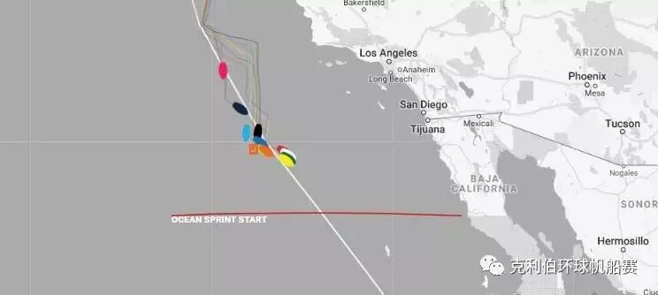 5月5日,比赛进入第7天,船队经历了畅快淋漓的快速航行,同时也将比赛推入到了新的阶段:船队马上驶过加州外海,准备进入到墨西哥外海域。