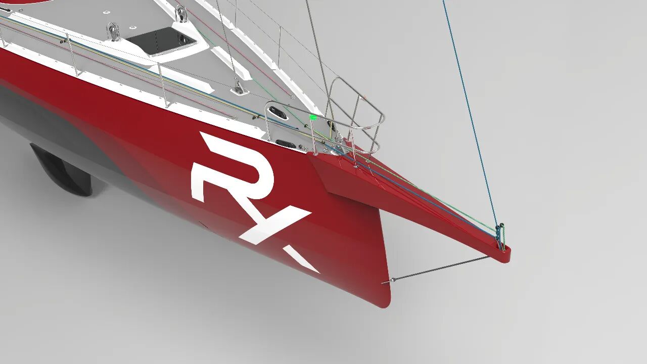 更加宽阔的前甲板和更加轻盈悬浮的船首设计将使船员更换前帆的操作变得更加容易,而且也能更有效的避免被浪花打湿。两个水密舱口处增设的甲板小舱室增强了甲板防护性,方便船员从甲板下快速进入中部操控区和双舵驾驶区。